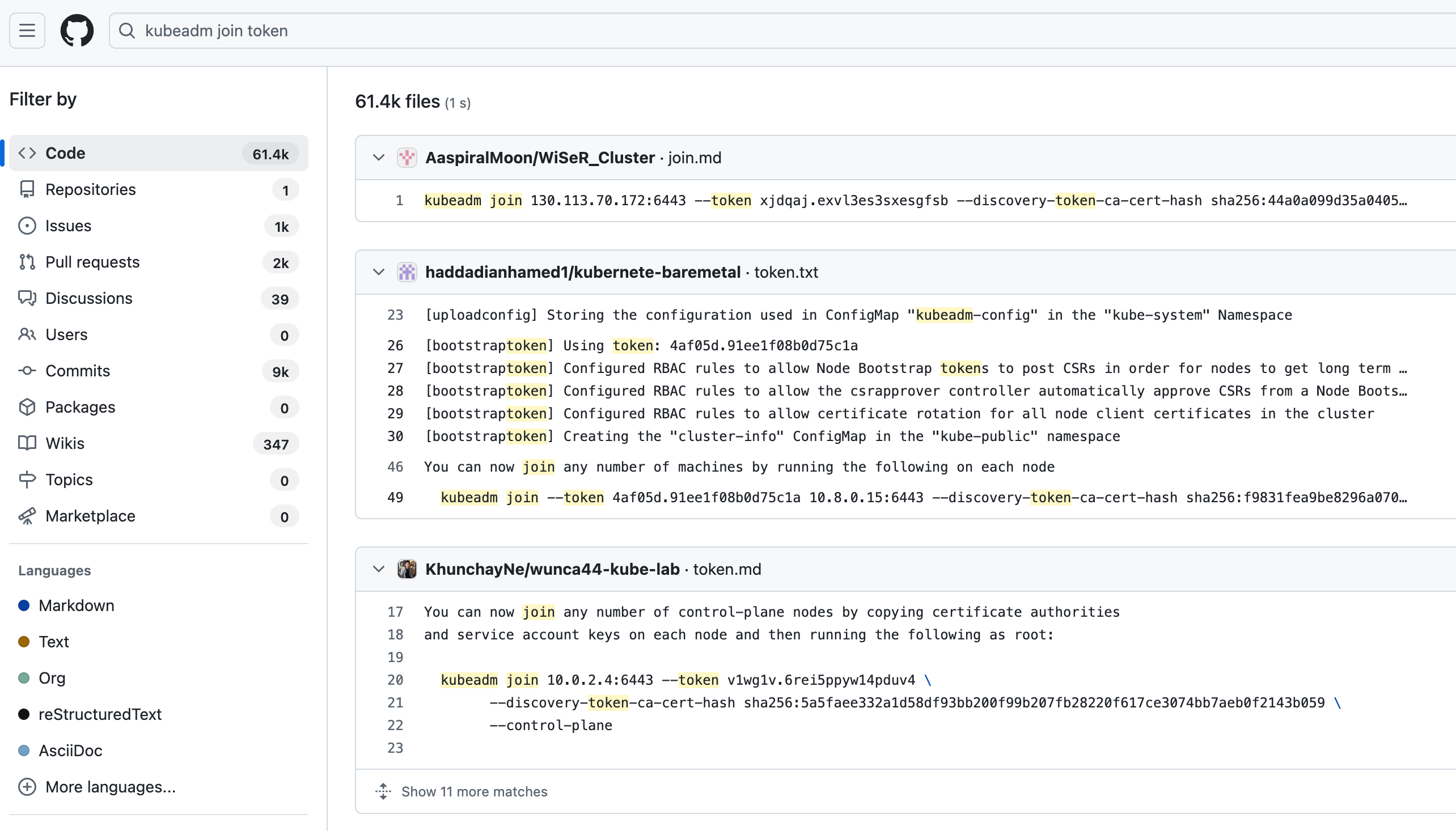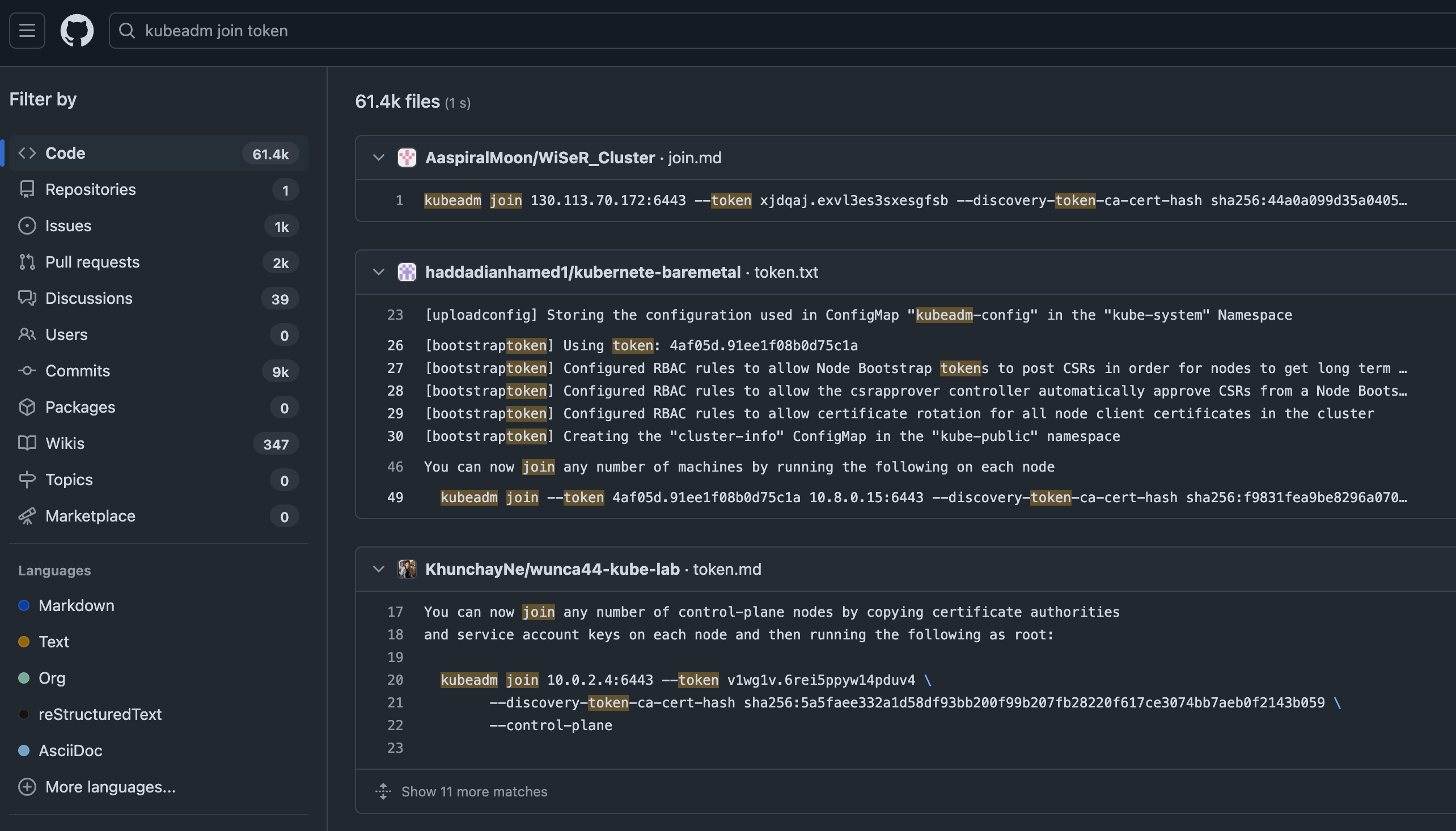 61,000 results for “kubeadm join token” in public repos in GitHub … how many are in your private version control systems?